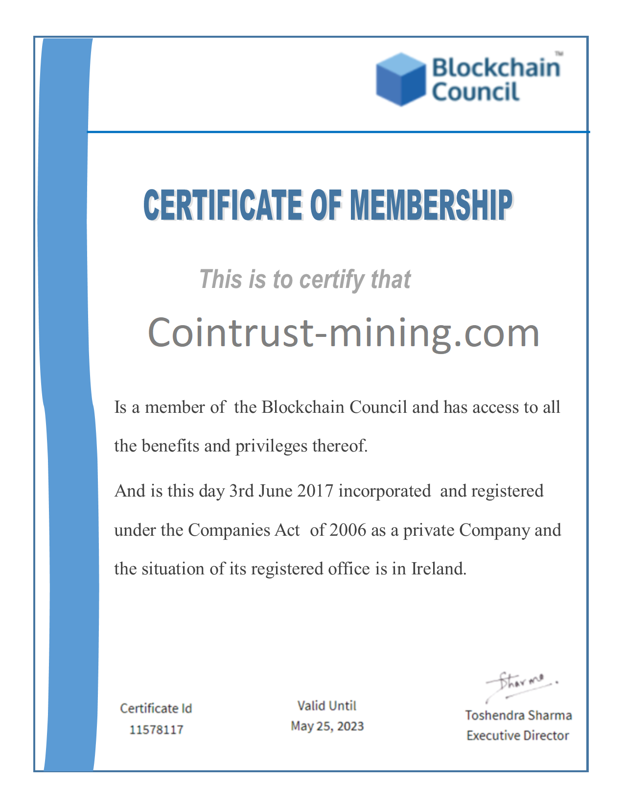 We provide fastest trading using modern technologies. No delays in order executions and most accurate quotes. Our trading platform is available around the clock and on weekends. Cointrust-mining customer service is available 24/7. We are continuously adding new financial instruments. We also reward our customers with 10% commission for reffering users to our platform
